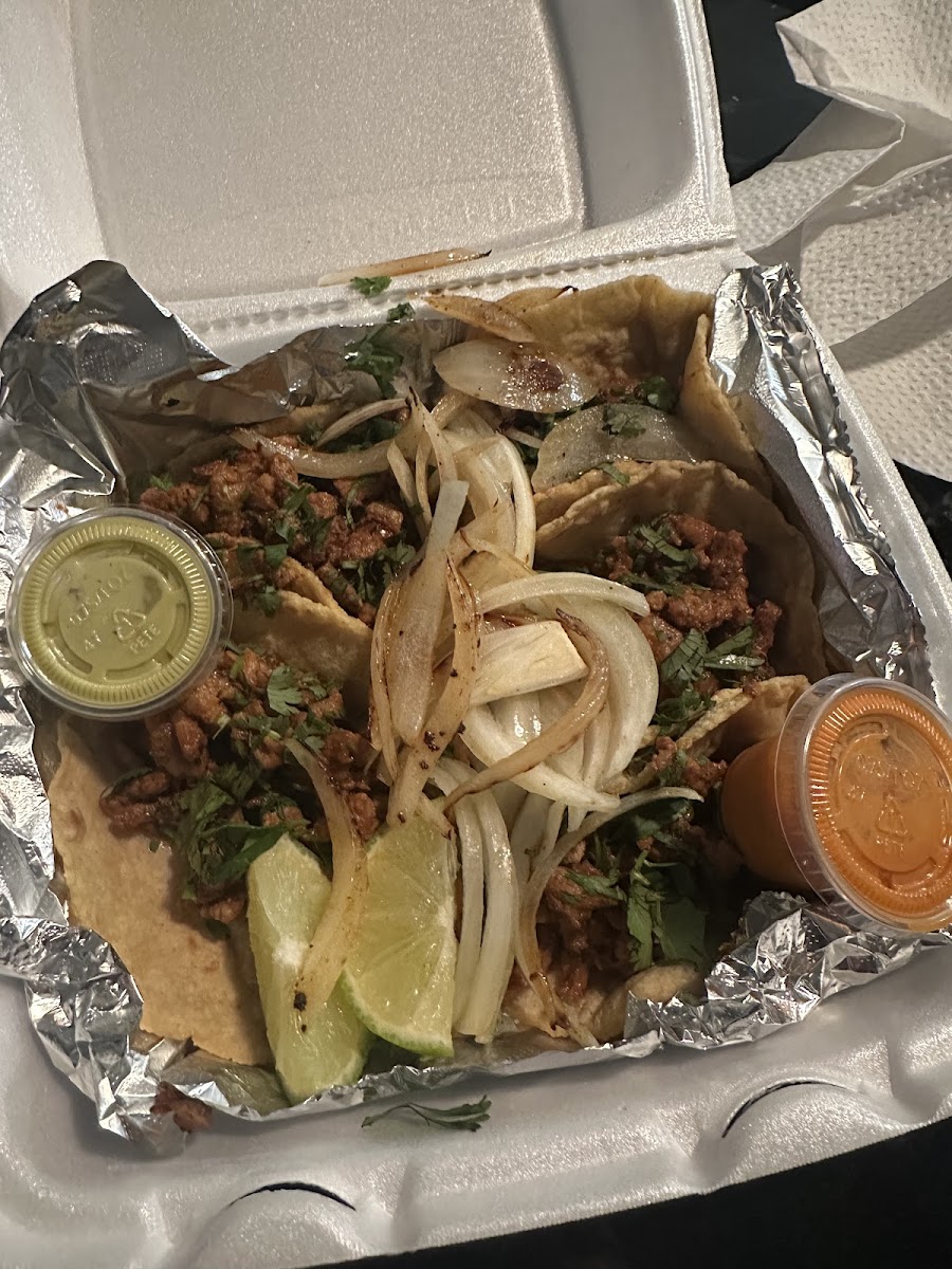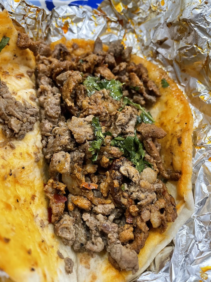 Authentic, legit Breakfast Tacos. Really good Quesadillas too. Food truck behind the Shell.