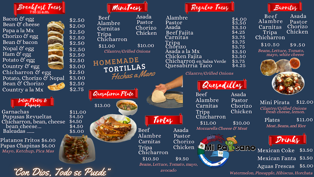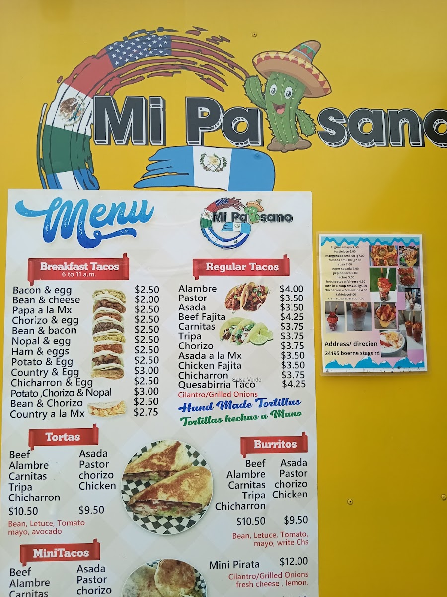 Welcome to Mi Paisano #1, a hidden gem located in Boerne, Texas. This vibrant eatery specializes in authentically crafted Mexican cuisine, featuring a mouthwatering selection of breakfast tacos served from 7 AM to 11 AM. With options like Chorizo & egg and Nopal & egg, there's something to satisfy every morning craving, all priced under $3.50.